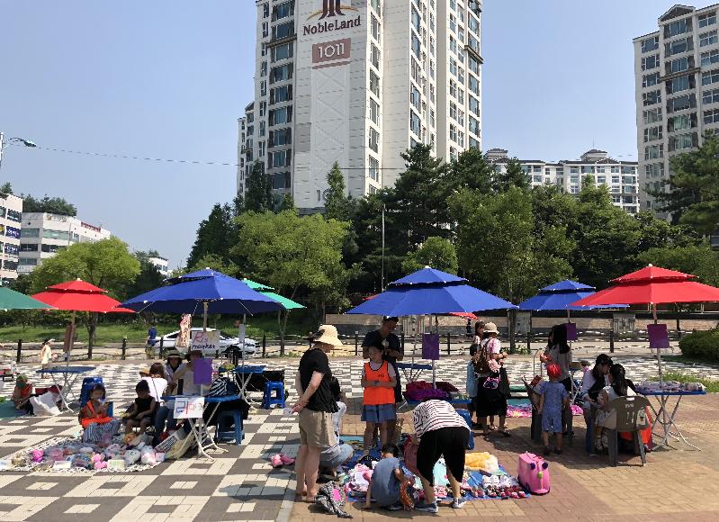 '리마켓'이라는 현판을 건 7살 석리아나 어린이와 함께 나온 어머니는 "인형과 악세서리를 갖고 나왔다. 며칠간 집에서 아이와 함께 쓰지 않는 물건을 선별, 정리하고 깨끗이 세탁하고 포장하는 일 자체가 아이에게 소중한 경험이었다"며 "벌써 7천원의 매출을 올렸다"고 환하게 웃었다.