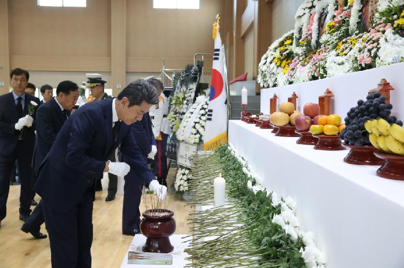 이강덕 포항시장을 비롯한 포항시 간부공무원들이 지난 17일 발생한 해병대 헬기사고로 순직한 장병들의 합동분향소가 마련된 해병대 제1사단을 찾아 조문하고 고인들의 명복을 빌었다. 이 시장은 유가족과 해병대 측의 합의로 장례절차가 이루어짐에 따라 21일 오후 조문을 한 뒤 “순직한 장병들의 넋을 기리며, 슬픔에 잠겨있을 유족들에게도 마음 깊이 위로를 전한다.”고 말하며 “사고 수습에 도움이 필요한 사항이 있으면 언제든지 적극 지원하도록 하겠다.”고 말했다. 포항시에서는 장례절차가 마무리 될 때까지 군과의 비상연락체계를 유지할 계획이며, 유관 단체와 함께하는 조문을 통해 전 시민 애도 분위기를 조성할 계획이다. 한편 순직 장병들의 장례는 3일장으로 진행되며, 오는 23일 해병대 1사단 내 도솔관에서 영결식이 진행될 예정이다.배수남 기자 najomba2279@daum.net