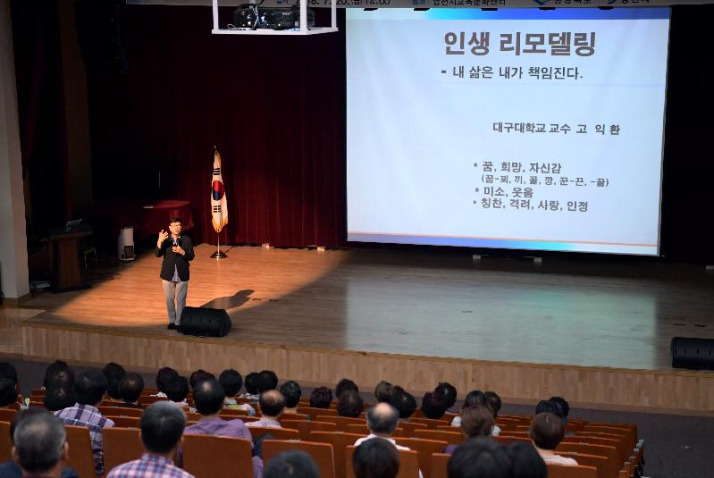 영천시(시장 최기문)는 20일 교육문화센터에서 고익환 대구대 교수를 초빙해 ‘인생 리모델링’이라는 주제로 도민참여 교육을 실시했다.