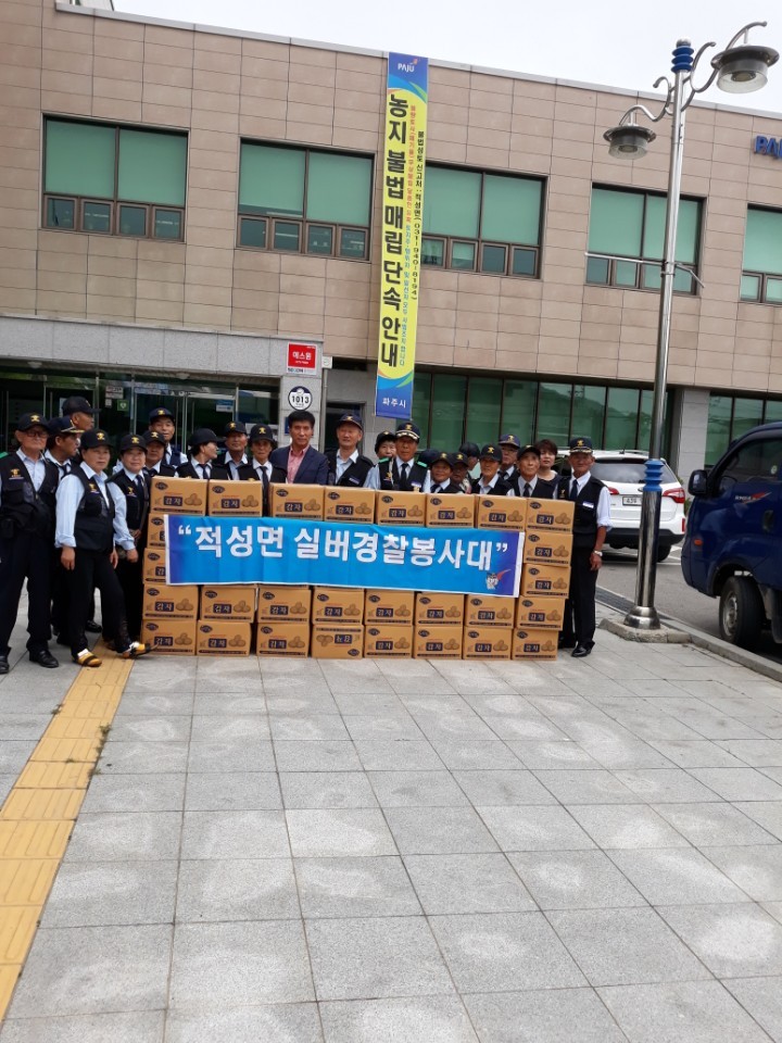 파주시 적성면 실버경찰대(대장 정구채)는 지난 20일 대원 20여명이 참석한 가운데 적성면 행정복지센터에 감자 10kg 40박스를 기탁했다.