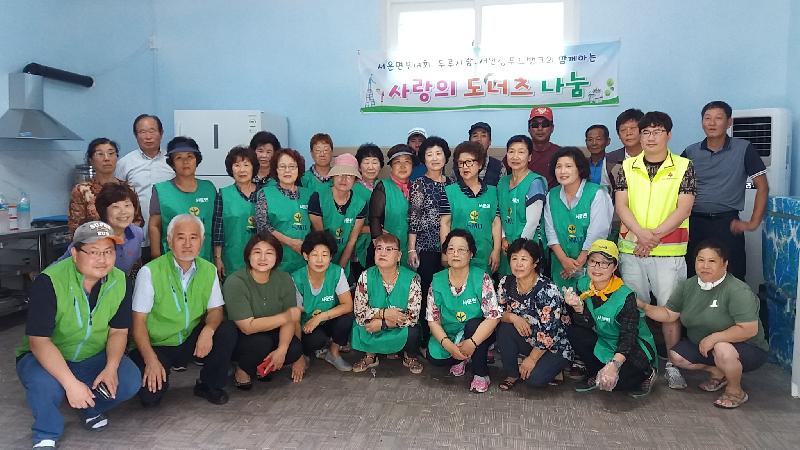 서안성 푸드뱅크(박면호대표)와 두루사랑 봉사단은 7월19일(목) 서운면사무소 새마을 부녀회 다목적실에서 푸드뱅크관계자 및 두루사랑 봉사단, 서운면 새마을 지도자회 및 부녀회원 등 30여명이 참석한 가운데 『사랑의 도넛 나눔행사』를 가졌다.