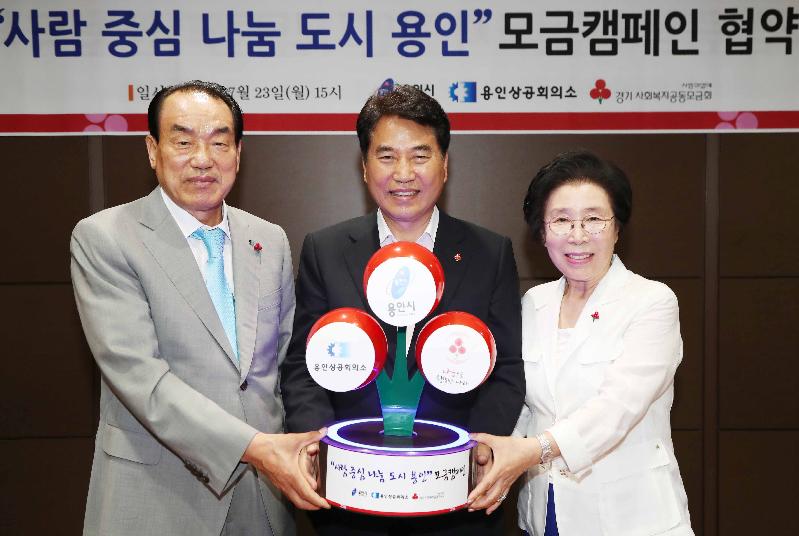 용인시는 23일 시장실에서 용인상공회의소, 경기사회복지공동모금회와 ‘사람중심 나눔도시 용인’모금캠페인 협약을 맺었다.