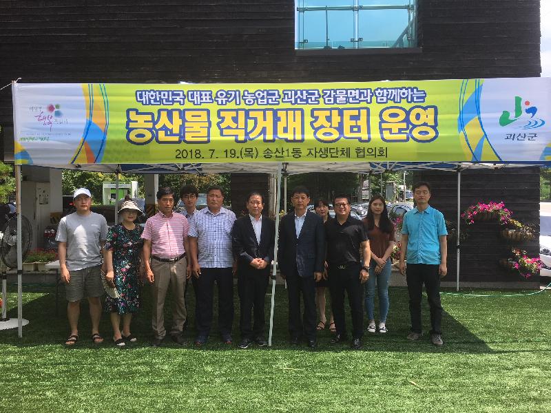 송산1동 주민센터(동장 전진표)는 지난 19일 동 주민센터 앞마당에서 자매결연지인 충북 괴산군 감물면의 질 좋은 농산물을 주민에게 판매하는 직거래 장터를 개최했다.