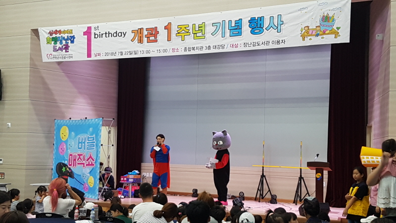 행사는 가족과 함께하는 레이크리에이션 및 마술, 풍선, 버블쇼, 추첨함, 기념품지급 등 다양한 프로그램으로 진행하였으며, 특히 마술공연은 아이들의 호기심을 자극하며 참여자에게 큰 인기를 끌었다.
