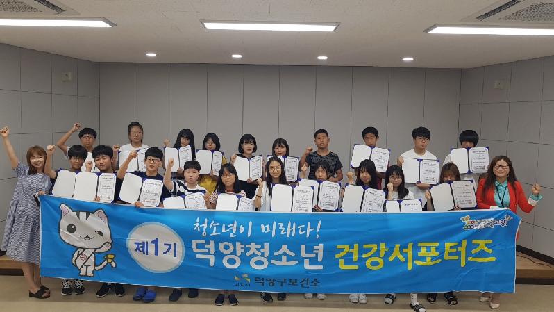 ‘덕양청소년 건강서포터즈’는 건강증진 관련 서포터즈 활동을 위해 덕양구 관내 중·고등학교 청소년 60여 명으로 구성됐다. 이들은 매월 1회 정기적으로 내가족, 내친구의 금연, 비만예방, 치매극복 파트너 등 건강증진에 대한 정보전달과 홍보 및 소통 메이커로서의 역할을 수행하고 있다.