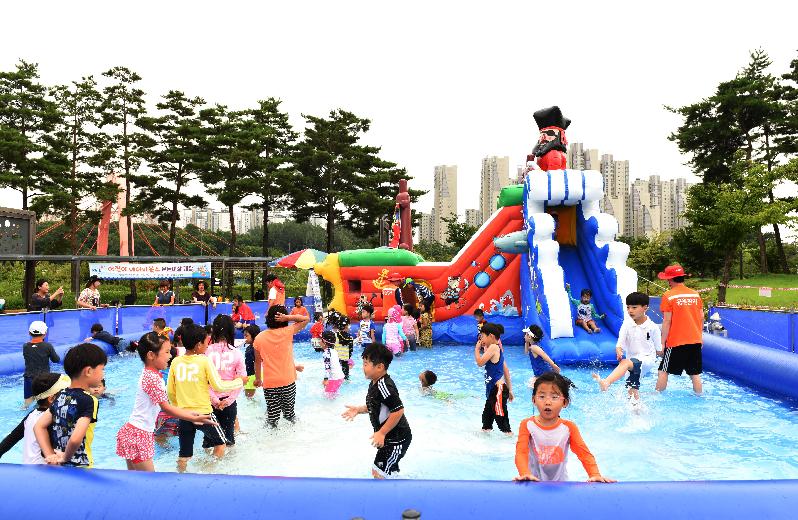 에어바운스 물놀이장은 슬라이드가 설치돼있어 어린이들이 가족과 함께 물놀이를 하면서 무더위를 잊는 즐거운 시간을 보낼 수 있을 것으로 기대된다.