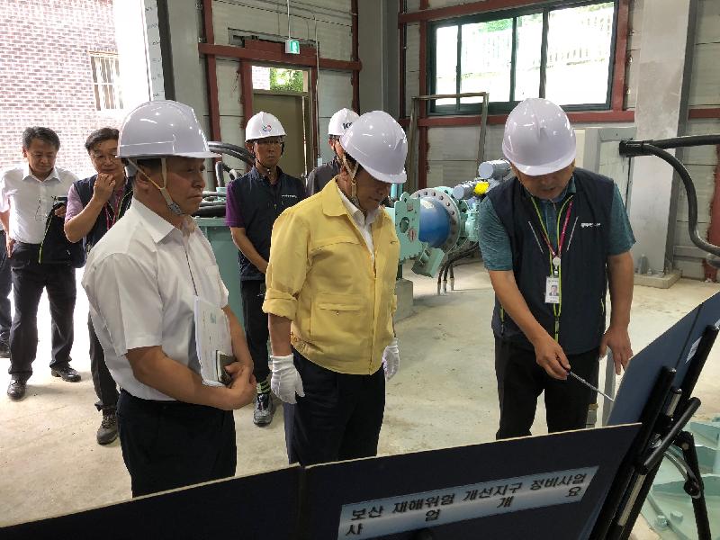 최용덕 시장은 이날 ‘보산1 펌프장지구 개선복구’ 현장 상태를 꼼꼼히 살핀 뒤 펌프를 직접 시험 가동하였고, 이후 보산동주민들의 요구사항들이 있는지 확인했다.