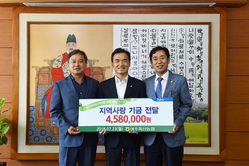 여주축산농협은 지속적인 이웃사랑을 실천하기 위해 “농협행복통장” 기금을 조성해 2014년도에도 203만원을 여주시에 기탁한 바 있으며, 이웃돕기 성금 기탁을 통해 나눔을 실천하고 기업의 사회적 책임을 다하기 위해 노력해오고 있다.
