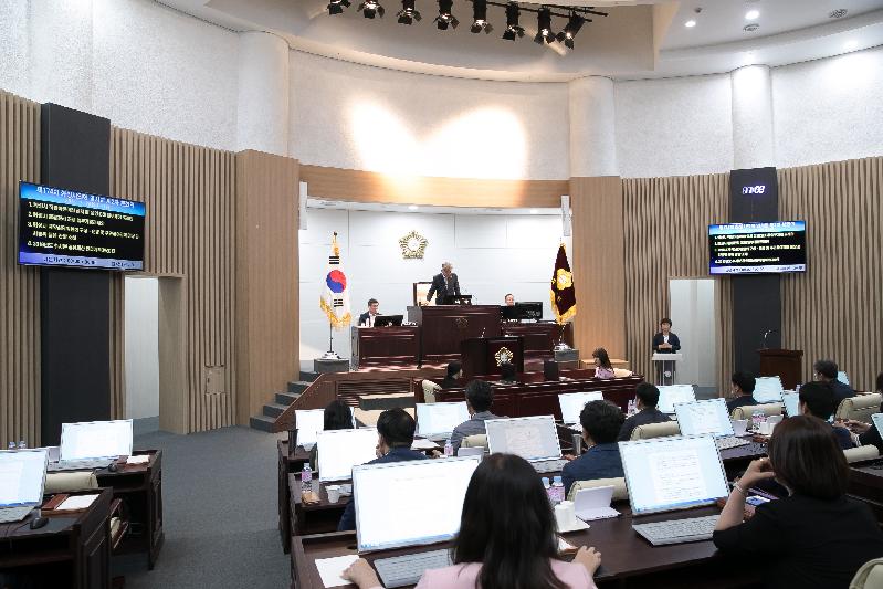 이창현 부의장은 “시정발전과 주민복지 향상을 위해 심도 있는 안건심사와 현장 방문 등 열정적인 의정활동을 보여주신 동료 의원 여러분께 감사드린다”며 “ 임시회에서 심사 의결한 다양한 정책과 조례 등이 시정에 적극 반영돼 시민의 삶의 질 향상과 복지증진에 기여하길 기대한다”고 밝혔다.