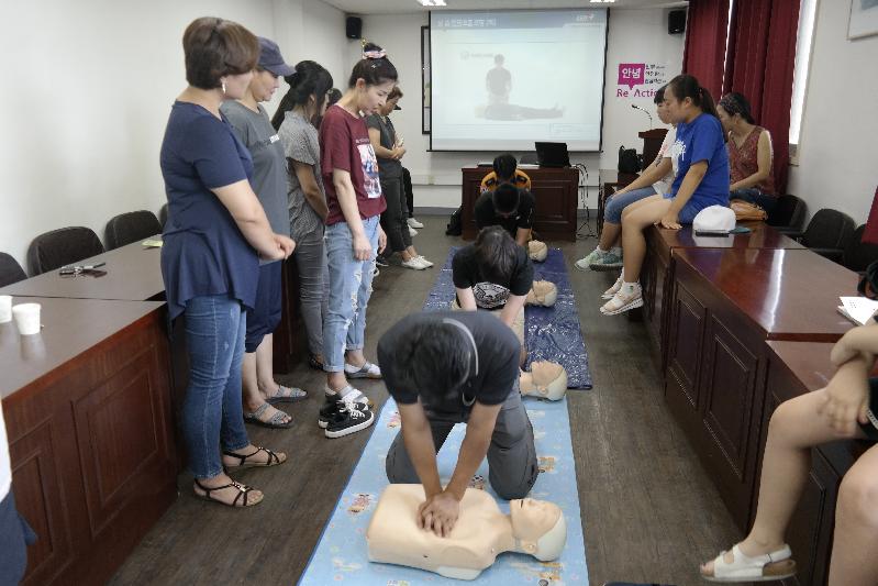 봉사와 함께 가족봉사단 심폐소생술 교육을 실시했다.