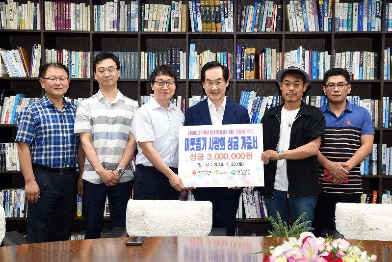 네이버 카페 ‘의정부이야기’는 지난 23일 의정부 시청을 방문하여 관내 저소득층 가구에게 전달해 달라며 성금 300만원을 기탁했다.