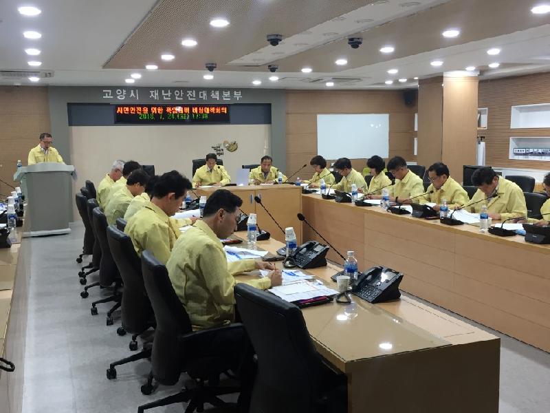 고양시(시장 이재준)는 24일 시청 폭염종합지원상황실에서 폭염 업무관련 실·국·소장 등이 참석한 가운데 폭염 장기화에 따른 관계부서 긴급 대책회의를 개최했다.