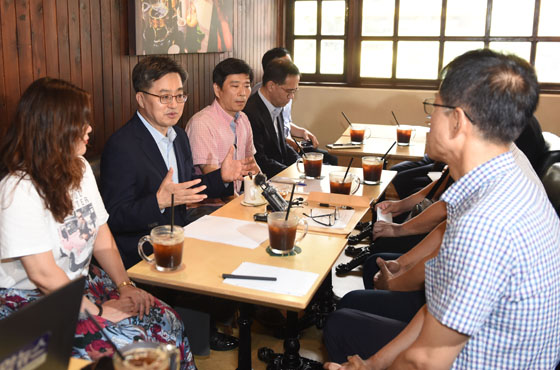| 김동연 부총리 겸 기획재정부 장관이 7월 18일 서울 신촌 지역을 방문, 인근 소상공인들과 대화의 시간을 갖고 애로사항을 청취하는 등 현장점검을 하고 있다.(사진 = 기획재정부) |