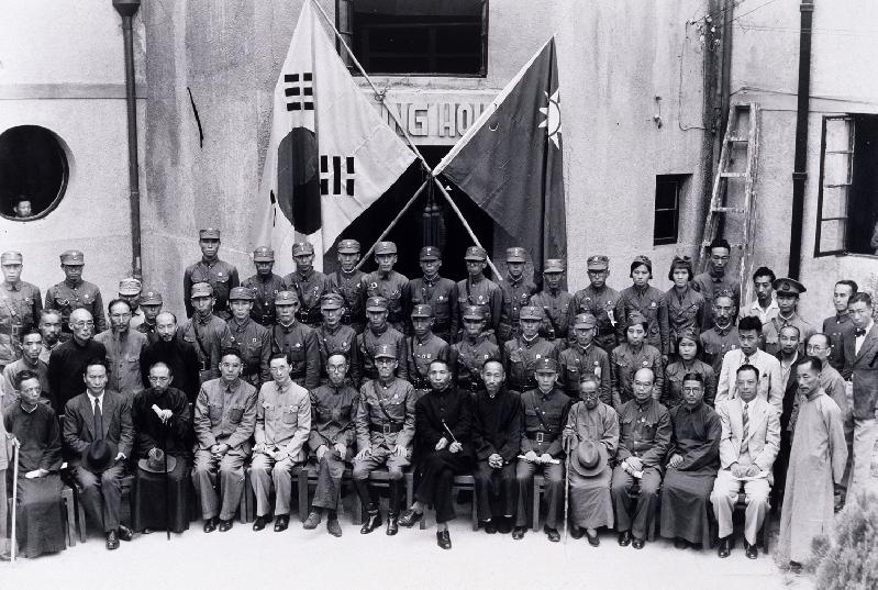 | 한국광복군 총사령부 성립 전례식 후 한중 대표들의 기념 사진(중경, 1940.9.17), 독립기념관 제공 |
