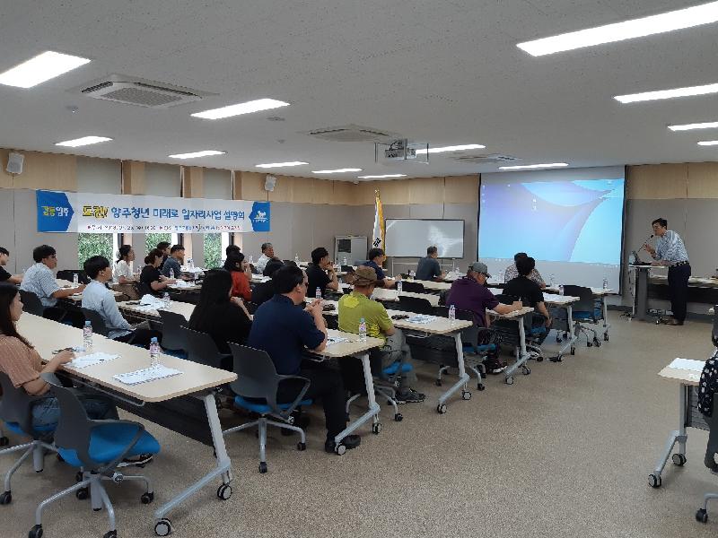 양주시(시장 이성호)는 지난 25일 고용복지플러스센터 2층 실업급여설명회장에서 ‘도전! 양주 청년미래로 일자리사업’ 설명회를 개최했다.