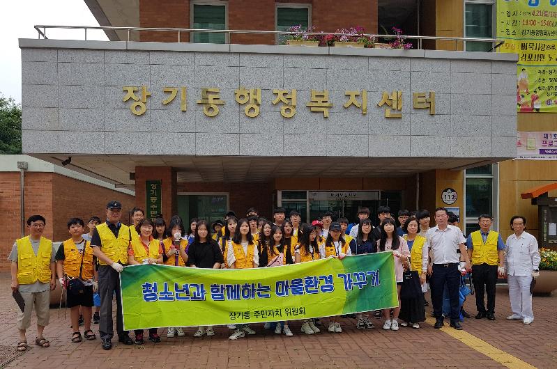 장기동 내 중‧고등학생 50여명은 여름방학을 맞아 지난 26일 관내 상가주택가와 주요 도로변에서 지역 환경정화 봉사활동을 실시했다. 장기동 주민자치위원회에서 준비한 「여름방학 학생 자원봉사 프로그램」에 참여한 것이다.