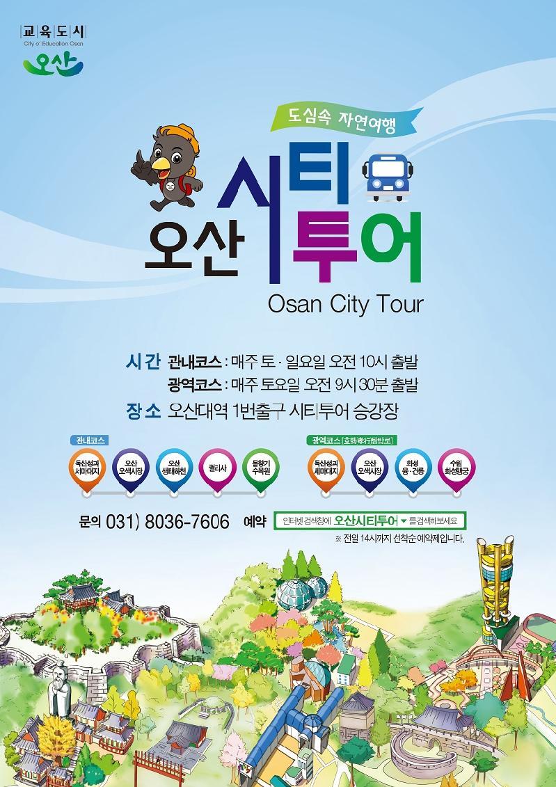 오산시티투어는 국가사적 140호인 독산성과 100년 전통의 오산오색시장, 물향기수목원 등 오산시의 주요 관광지를 하루 동안 돌아볼 수 있는 코스로 구성되어 있으며, 특히 광역코스인 효행(孝行)탐방로는 매주 토요일 독산성과 융·건릉 화성행궁 연계하여 운영하며 저렴한 참가비에 다양한 체험까지 제공된다.