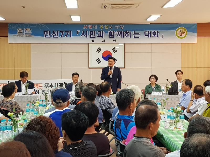 이번 시민과의 대화는 지난 16일 창전동을 시작으로 14개 읍면동을 돌며 시민을 만나는 일에 중점을 두고 기관·사회단체장 간담회, 시민과의 대화, 기업인 간담회 순으로 진행됐으며, 27일 백사면을 끝으로 성공적으로 마무리됐다.