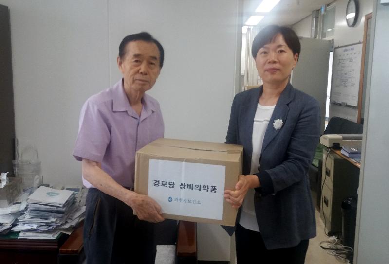 과천시보건소는 27일 과천시노인복지관에 있는 과천시노인회 사무실을 방문해 각동 경로당에 배포할 480만원 상당의 구급상자 28개를 전달했다고 밝혔다.