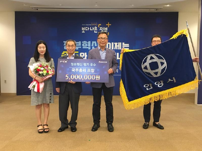 안양시(시장 최대호)는 지난 26일 정부서울청사에서 열린 정부혁신 추진 유공기관 시상식에서 국무총리 표창을 수상했다고 밝혔다.