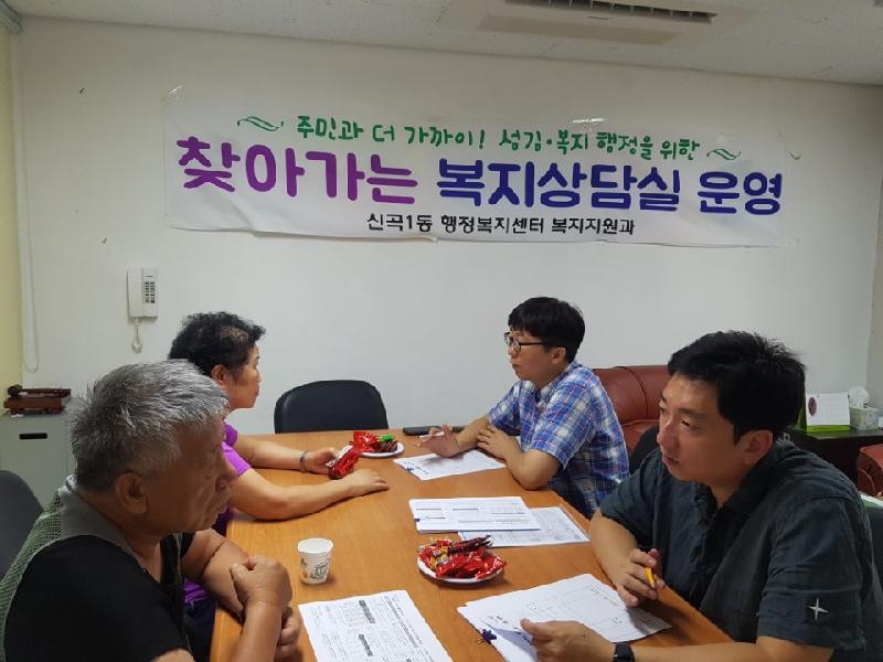찾아가는 복지상담실은 동 주민센터 방문이 어렵고 복지정보에 취약한 지역 내 복지소외계층에게 복지제도를 소개하고, 상담을 통한 맞춤형 복지서비스를 제공하는 프로그램이다.