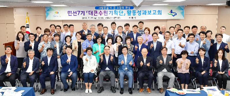 지난 6월 21일 출범한 더큰수원기획단은 민선 7기 수원시의 비전과 시정 운영 전략을 발굴하는 역할을 했다. 지방정부분과, 활기찬 경제분과(경제·도시), 탄탄한 복지분과(복지·교육), 매력도시분과(문화·환경) 등 4개 분과(74명)로 이뤄진 기획단은 민선 7기 전략과제를 발굴하고, 약속사업을 검토했다.