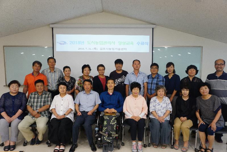 김포시농업기술센터(소장 고상형) 2018년 도시농업관리사 양성교육 수료식이 수료생 20명이 참석한 가운데 지난 26일 농업기술센터 엘리트교육관에서 열렸다.