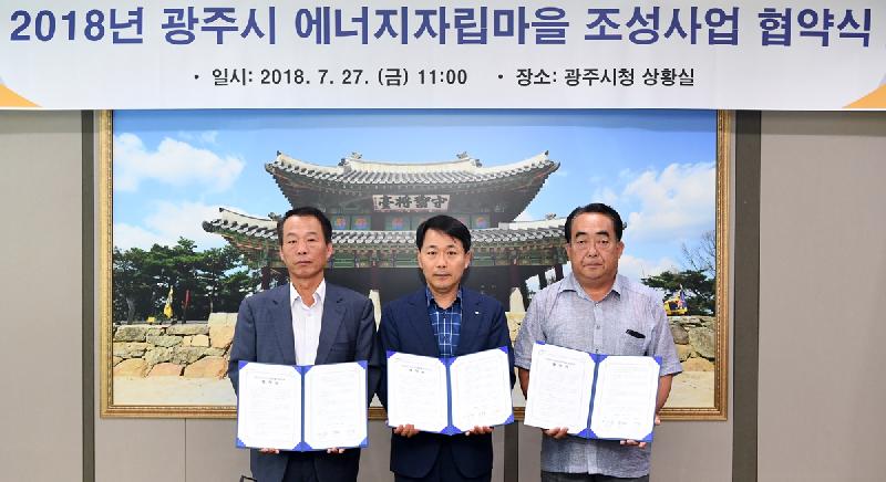광주시(시장 신동헌)는 지난 27일 시청 상황실에서 에너지 복지 실현 및 신재생에너지 보급·확산을 위한 ‘2018년도 에너지자립마을 조성사업’ 협약을 맺었다.