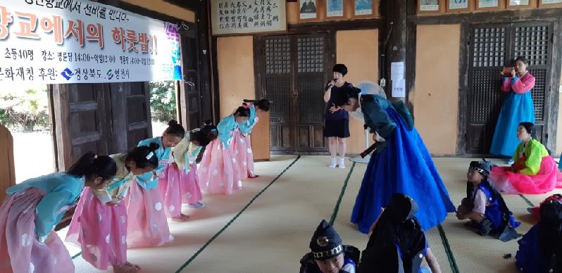 이는 문화재청 공모사업인 향교‧서원문화재활용사업에 선정된 ‘영천향교에서 선비를 만나다’ 프로그램의 하나로 지난 차수에는 김천 지역 초등학생과 부모님 30여명이 참여하는 등 영천향교 고택숙박체험이 입소문을 타고 관내를 넘어 인근 지역 학생들과 학부모들의 관심을 한 몸에 받고 있다.