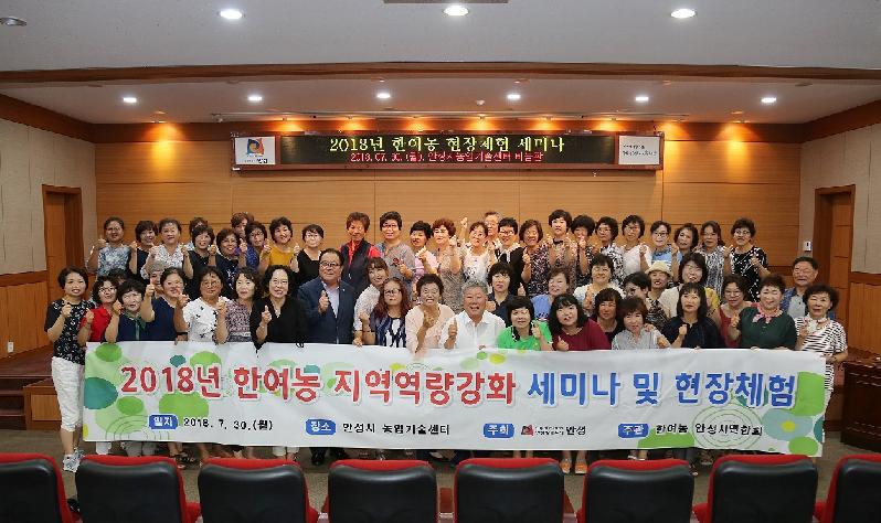 안성시(시장 우석제)는 지난 30일 농업기술센터 비봉관에서 여성농업인의 경쟁력 강화를 위한 2018년 한국여성농업인(이하 한여농) 지역역량강화 세미나 및 현장체험 교육을 실시했다고 밝혔다.