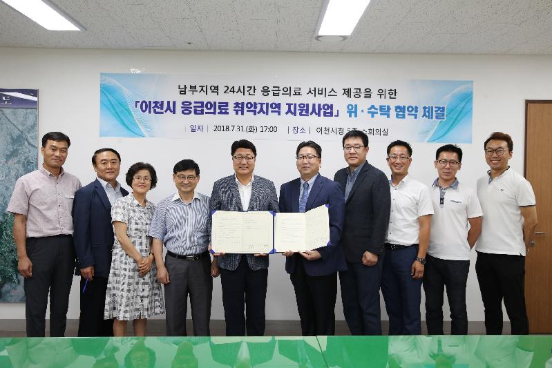 이천시(시장 엄태준)와 장호원성모병원(병원장 정호중)은 7월 31일 시청 소회의실에서 「이천시 응급의료 취약지역 지원사업」(이하 “응급의료 지원사업”) 위·수탁 협약을 체결했다.