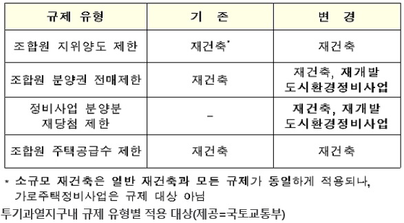 또한 투기수요에 의한 집값 불안의 주요 진원지였던 재건축 등 정비 사업이 주변 집값 불안을 야기하지 않으면서 차질 없이 진행될 수 있도록 규제를 정비하는데에도 중점을 뒀다.