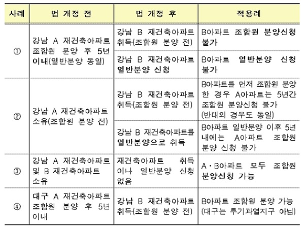 한편, 법 개정 과정에서 상속 등으로 불가피하게 정비사업의 조합원 분양을 받게 되는 경우에 대한 예외규정 신설도 검토할 예정이다.◇ 법 개정 이전부터 정비사업 구역내 소유하고 있던 주택에 대해도 조합원 분양 재당첨 제한이 적용되는지?