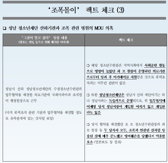 즉, 방송에서 조폭연루의 근거로 제시한 내용들이 '팩트'가 맞냐는 것이 문제의 본질입니다.