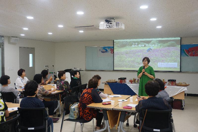 이날 교육은 권혁준 인재개발과장의 격려사에 이어, ‘춤추는 꽃차마을’ 박영란 강사의 약이 되는 꽃과 열매 이야기, 힐링꽃차 가공실습이 진행됐다. 또한 오후에는 문수산 삼림욕장 산책과 천연염색 체험을 통해 우리지역 생태문화탐방과 농촌자원을 활용하는 방법을 배웠다.