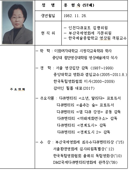 이재명 경기도지사가 다큐멘터리 ‘경계도시’, ‘미래제화연구소’ 등을 연출한 홍형숙 감독을 신임 집행위원장에 임명했다.