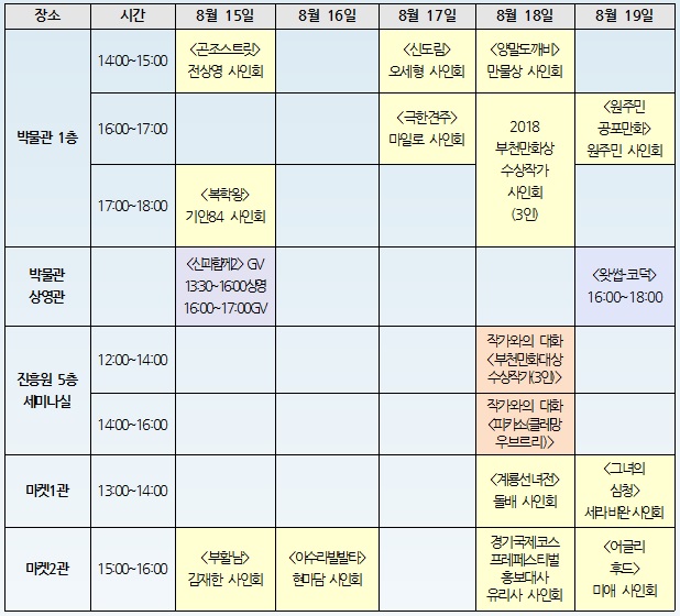 ■ 작가 사인회 등 만화가 참여 프로그램 세부 일정표