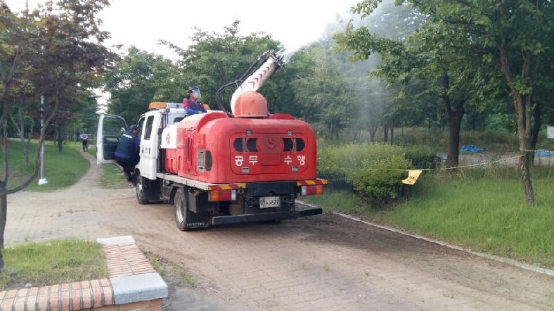 개별적으로 방제를 시행할 경우 방제효과가 떨어져 관련 부서와 합동방제를 실시하고 있다. 특히 각 동사무소에 동력분무기 및 물탱크 등 방역도구와 약제를 지급해서 지역 자체방제를 유도하고 있으며, 아파트 단지와 농가의 자체방역을 적극 유도해 방제효과를 높이기 위해 노력하고 있다.