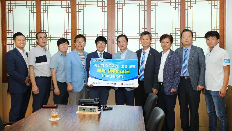 평택로타리클럽(회장 최태진)은 7일 평택시를 방문해 제49~50대 회장 및 임원 이․취임식에서 축하 화환 및 성금을 대신하여 받은 쌀과 클럽 사회봉사예산을 추가하여 구입한 쌀을 어려운 이웃에게 전달해 달라며 일백오십만원 상당의 백미(10kg 60포)를 기탁했다.