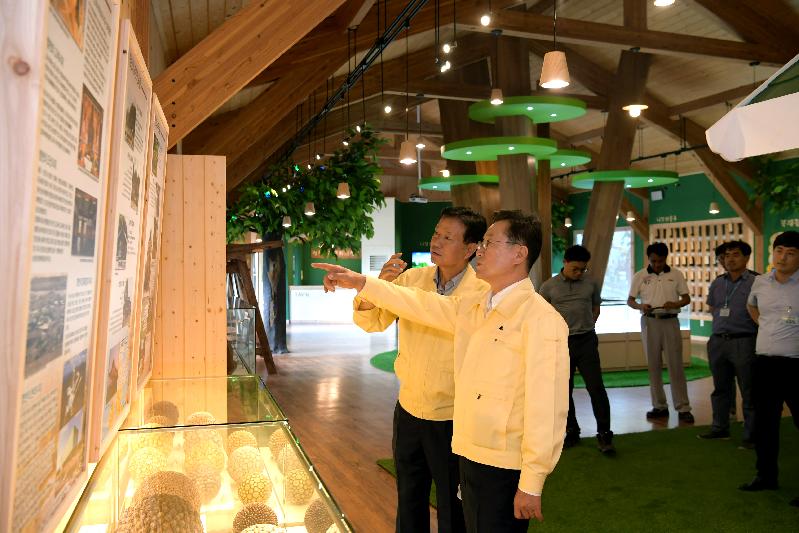 이날 현장방문에서는 목재문화전시관, 목재문화체험장 등의 시설물을 둘러보고 산림생태문화체험단지 부지를 방문해 관계자로부터 사업 추진현황과 향후계획 등에 대해 대한 설명을 청취했다.