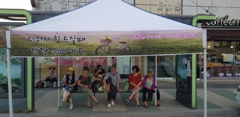 박주상 영북면장은 “기록적인 폭염이 연일 계속되다 보니 대중교통을 이용하거나 걸어다니는 분들이 많이 힘들어 하고 있다. 특히, 영북면은 어르신들과 취약계층이 많이 거주하고 있어, 연이은 폭염속에 일상생활 곳곳에 불편이 없도록 작은 부분까지 꼼꼼히 살펴서 안전하고 쾌적한 여름을 보낼 수 있도록 최선을 다할 것”이라고 밝혔다.