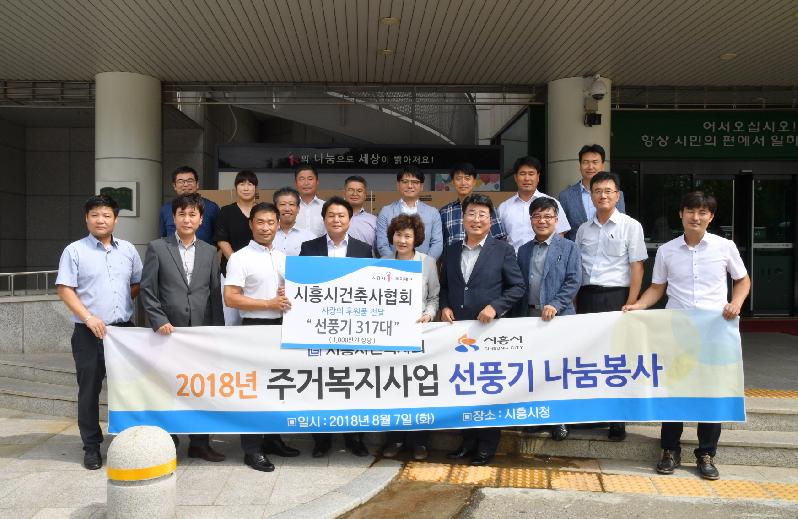 시흥건축사협회는 이날 첫 번째 사업으로 무더위에 힘들어하는 주거취약계층을 위해 1,000만원 상당의 후원품과 선풍기 317대를 기증했다. 후원품은 시흥시1%복지재단을 통해 시흥시 관내 주거취약계층에게 전달됐다.