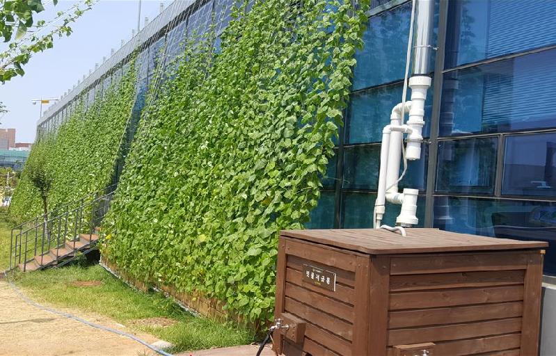 이로 인한 실내온도 상승 억제 및 냉방효율 개선 외에도 비오톱 기능 향상, 녹시율 증가로 인한 그린 인테리어 등의 효과를 볼 수 있다. 또한 나팔꽃 생육관리를 위해 시흥에코센터에 설치된 300톤 규모의 빗물저장소와 신규 설치한 1톤 규모의 소규모 빗물저금통을 함께 활용하여 버려지는 빗물을 재이용하는 관수시스템도 함께 운영 중이다.