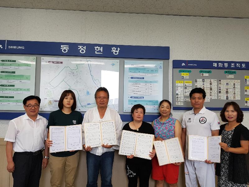 시흥시 매화동행정복지센터(동장 성기양)와 매화동 지역사회보장협의체(위원장 서순진)는 지난 7일 매화동행정복지센터에서 ‘시흥복지 디딤돌사업’ 우리동네 나눔가게 기부업체 대표 5명이 참석한 가운데 협약식을 개최했다.