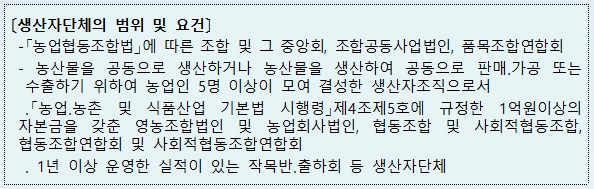 응모 자격은 생산자 단체, 영농조합, 작목반 등 생산자단체 이며 지원은 농산물의 생산 가공 유통 판매 등에 필요한 시설 장비로 축산물 및 임산물은신청 대상에서 제외 되며 지원한도는 총 사업비 기준 1개소당 30억원 이내이며, 신청은 선택형맞춤농정사업 신청서 및 계획서를 작성하여 읍·면·동사무소로 제출하면 된다.