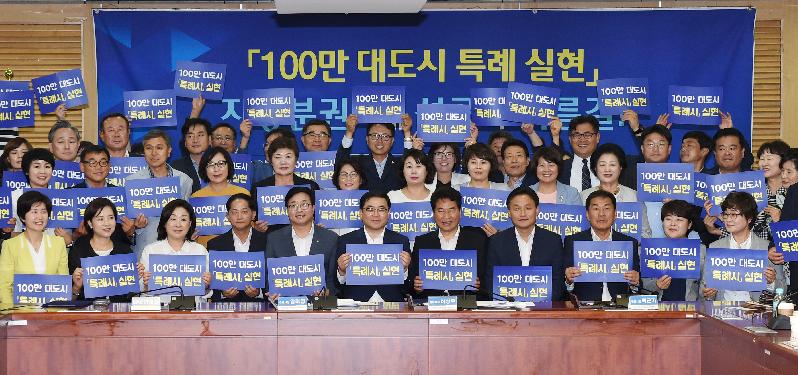 국회에선 100만 대도시 특례와 관련해 지난 2016년 김진표 의원이 발의한 ‘지방자치분권 및 지방행정체제 개편에 관한 특별법’ 개정안과 이찬열‧김영진 의원이 발의한 ‘지방자치법’ 개정안 등이 계류 중이다.