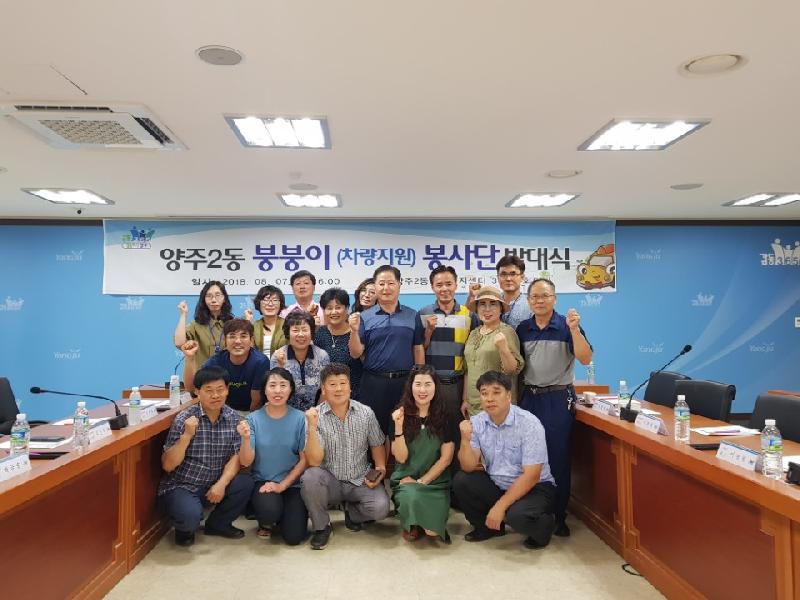 양주시 양주2동(동장 성열원)은 지난 7일 양주2동 행정복지센터에서 지역 주민들로 구성된 ‘붕붕이 봉사단’ 발대식을 진행했다고 밝혔다.