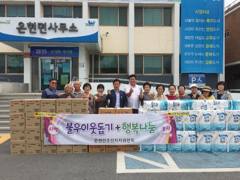 이날 위원회는 폭염 속 어려움을 겪고 있는 은현면 12개 마을 불우이웃 60가구를 찾아 국수, 휴지, 세제 등 생필품을 전하며 나눔을 실천했다.