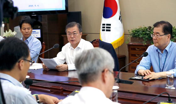 | 문재인 대통령이 지난 6일 청와대 여민관에서 열린 수석·보좌관 회의를 주재하고 있다. (사진 = 청와대) |