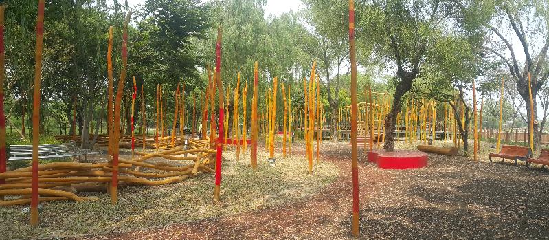4개의 정원 중 첫 번째 [이화(梨花)의 정원]은 전통담장과 공원부지 내 과수원 배나무를 옮겨와 사라져가는 평택 배꽃의 향수를 배려하였으며, 다문화와 다양성의 잠재력을 표현한 [무지개(Rainbow)정원]에는 무지개 색과 둥지형태의 조형목, 오름데크, 무지개 다리가 재미를 더하며 뫼비우스 띠를 형상화한 공간에 90여개의 크고 작은 구(毬)형태의 경관조명이 압권인 [빛의(Light) 정원]에는 작은 수로(정화의 샘), 시간의 기둥을 통해 상징성과 멋을 더하고 있다. 마지막으로 아담한 규모의 [지지배베(GiGi-BaeBe)정원]은 대나무 숲과 소리나눔 파이프를 통해 소통의 의미를 느끼도록 하였다.